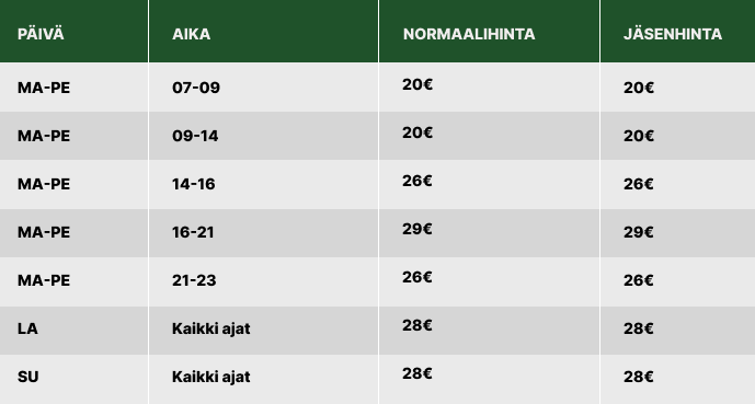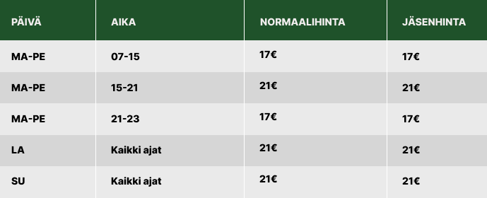 Valmennus hinnasto: