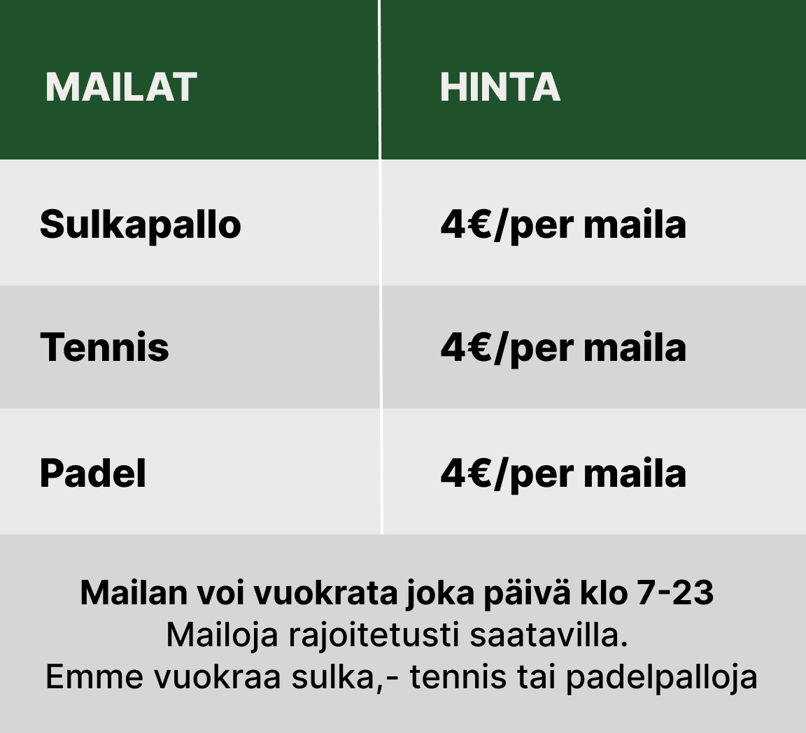 Rajattomat pelit (sisä & ulkopadel, tennis, sulkapallo)